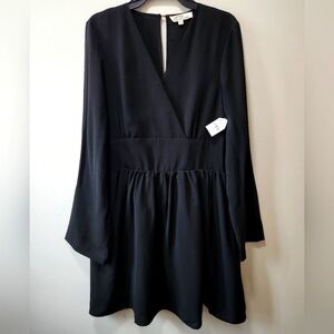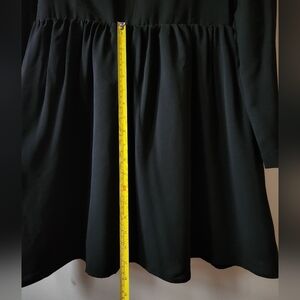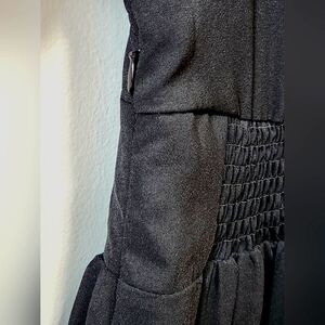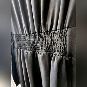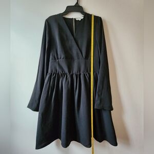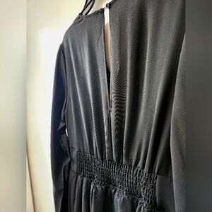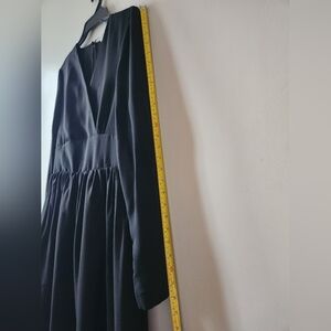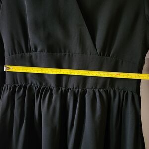 Black Size L Midi A-Line Dress with Waist Band V Neck Zipper Closure- BNWT