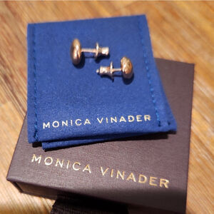 New with box, never used Monica Vinader Nura Small Pebble Stud Earrings in rose gold. Comes with pouch and box.