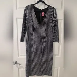 Vixen by Micheline Pitt Black Striped Miss Kitty Wiggle Dress with Belt Size XL