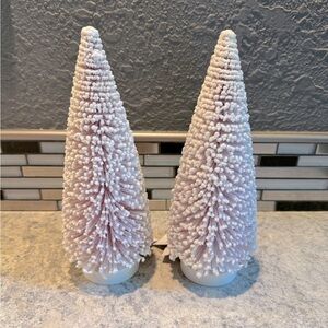 Set of Pink Flocked Bottle Brush Holiday Trees