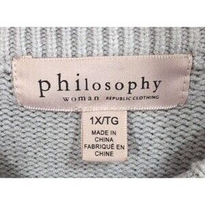 This Philosophy Women's 1X Sweater in Gray/Blue Striped Knit is a versatile and stylish addition to any wardrobe. The pullover design, long sleeves, and crew neck make it suitable for casual, travel, or workwear occasions. Made from a blend of polyester, nylon, and viscose, this sweater is machine washable for easy care. The nautical theme and coastal features give it a unique and fashionable appeal, perfect for a winter, fall, or spring look.