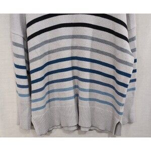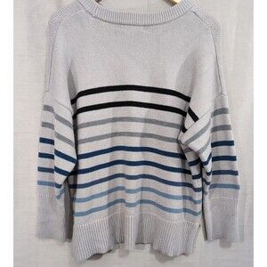 Philosophy Womens 1X Sweater Gray/Blue Striped Crewneck Pullover Nautical Casual