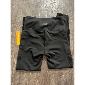 New Balance Leggings Black Moisture Wicking Pockets Size XS Cropped Mesh NWT