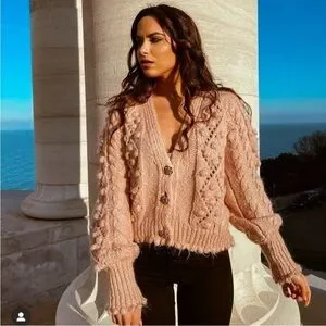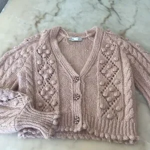 Zara Jewel Button Knit Cardigan Blush Pink Knit Sweater Size Small Loose Fit
