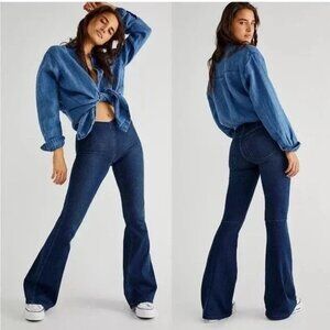 WE THE FREE Jeans Womens 30 Blue High Rise Penny Pull-On Flare Stretch Denim 70s