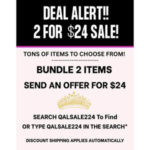 DEAL ALERT! Check out this awesome SALE! BUNDLE THIS ITEM WITH ANOTHER 2/$24 ITEM IN MY CLOSET, COMMENT "READY" AND I'LL SEND $24 OFFER WITH DISCOUNTED SHIPPING! There are MULTIPLE participating items to choose from. To find these items, type QALSALE224 in the search bar on Poshmark or click the QALSALE224 style tag on this listing!