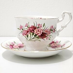 Paragon Fine China Pink "English Flowers Carnations" Tea Cup & Saucer