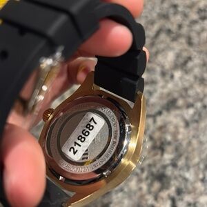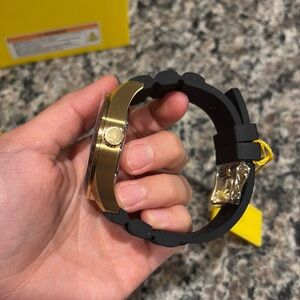 This impressive Invicta Aviator watch features a precise Quartz movement as well as a gold case. Its green, metal dial is enclosed by a highly protective Flame Fusion Crystal. This watch is finished by a strong black, band, and it offers 100 meters water resistance.