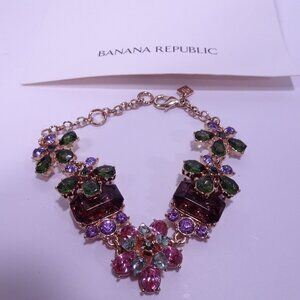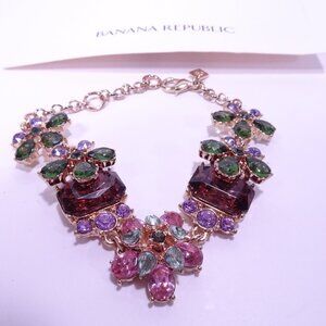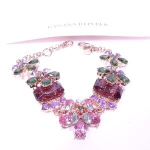 Banana Republic Crystal Gemstone 3 D layer Garland Link Bracelet NWT 89 Pink
