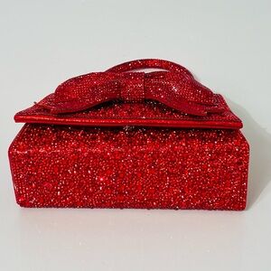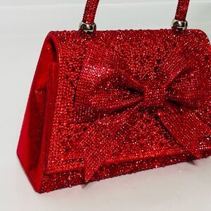 Stunning bag with beautiful crystal vivid red stones with a rhinestone bow design
