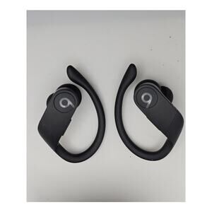 Beats Powerbeats Pro wireless earbuds in black with charging case. Tested and working. Shows signs of wear such as light scuffs from normal use. Ear tips included as shown. Charging case functions properly. Great for workouts, calls, and music with secure-fit ear hooks and powerful sound. See photos for exact condition.