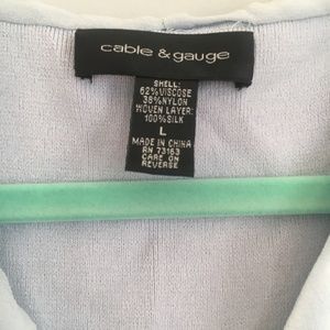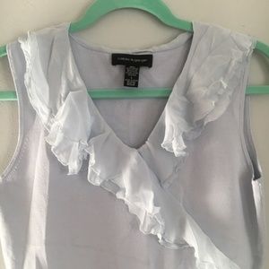 Soft blue faux wrap ruffled top by Cable & Gauge. Really great quality with mesh ruffles by the neck and a tie by the side on the waist. Tank top style, size large.