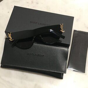 The lenses are a solid dark grey, offering 100% UV protection while adding a touch of mystery and allure to your look. Adorned with Saint Laurent’s signature gold-tone YSL monogram at the temples, these sunglasses deliver subtle yet unmistakable branding.