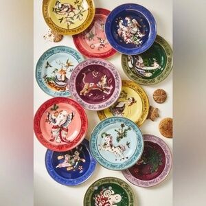 'Tis the season for hosting and toasting! Inspired by the classic carol "The Twelve Days of Christmas," Phannapast Taychamaythakool's creations serve as a vibrant portal to a whimsical world of animals dressed in Renaissance and Victorian-inspired attire who bring the beloved song to life. Care & Content Exclusively for Anthropologie Set of twelve dessert plates Glazed stoneware with handpainted decals Hand wash This item is not dishwasher or microwave safe Imported Phannapast Taychamaythakool is an artist and designer born and raised in Bangkok. Drawing from the enchanting realms of folklore, mythology, and traditional narratives, Phannapast masterfully weaves a whimsical wonder of the world