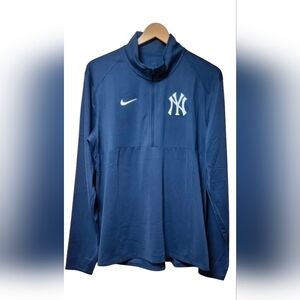 Navy pullover with New York Yankees logo. Features Nike branding.