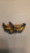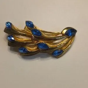 Stylish gold brooch featuring striking blue accents. Perfect for adding a touch of elegance.