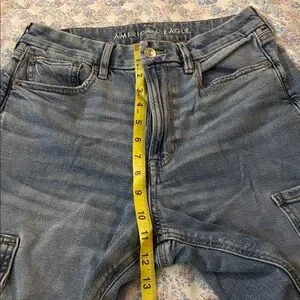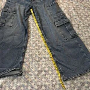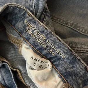 American Eagle Super High Rise Curvy Baggy Wide Leg Cargo Jeans. Size 6 Short. In great condition. 57% cotton, 18% lyocell, 12% recycled cotton, 11% viscose, 2% elastane.