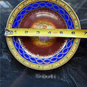 This vintage JK Carlsbad decorative plate is a charming addition to any collector's collection. The plate features a beautiful colonial design with blue and gold accents. Made in China, it is sure to impress with its attention to detail and quality craftsmanship. Measuring 6.5" x 6.5", it is a perfect size for display or use. Whether you are a collector or simply looking for a unique piece to enhance your home decor, this plate is a must-have.