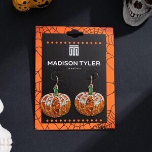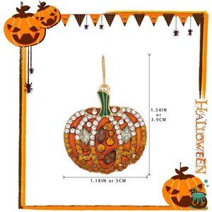 Ingenious Halloween Earrings : Our rhinestone pumpkin earrings are uniquely designed to make your Halloween party shine. Rhinestone pumpkin earrings are a ghoulish good-time gift for your tricksters at Halloween! The pumpkin is set with green and brown rhinestones.Very stylish, you can wear it all year round.