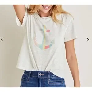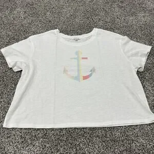 New with tags, VENUS White Cropped Anchor Short Sleeve Shirt Top, Size XL