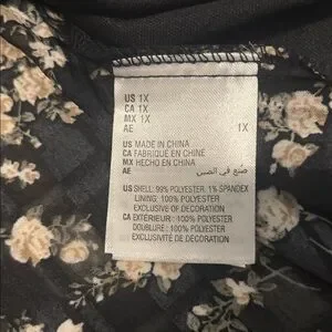 And Now This Black Floral chiffon v neck top SZ 1X plus size puffy sleeve NWT