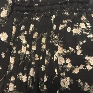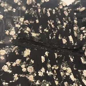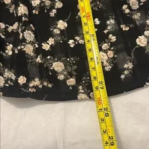 Elevate your wardrobe with this chic black floral top from . Perfect for any occasion, this top combines style and comfort effortlessly. This is new never worn oversized top with lining in front lace detail
