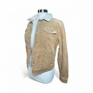 Corduroy Faux Sherpa Lined Trucker Jacket Tan Cozy Women’s Medium