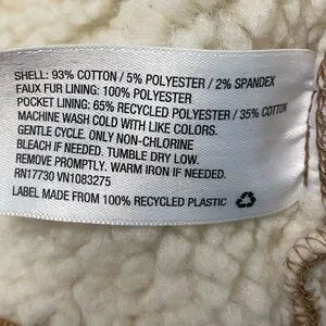 • Faux Shearling Lining: 65% Recycled Polyester, 35% Polyester
