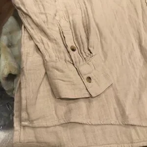 Relaxed fit with button front. Soft fabric and classic collar. Perfect for versatile styling.