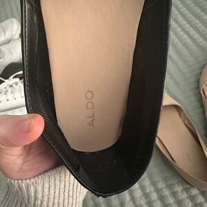 Chic and versatile flats by Aldo. Black color in a size 7. Good used condition with normal wear (creases). Still alot of life left! Perfect for office wear or casual wear. These are so comfy I’m only selling because my feet grew after having 2 kiddos 🫠🤣