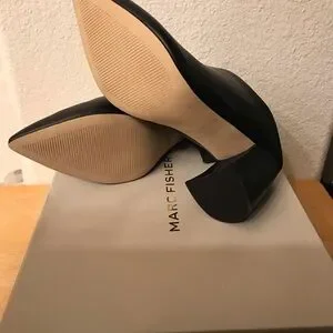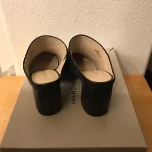 Sleek black leather mules by Marc Fisher. Ragni. Perfect for a chic look. Size 6 new
