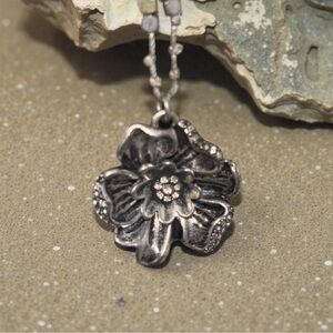 This elegant necklace features a stunning silver floral pendant, can be casual or dress up an outfit. Very simple yet pretty.
