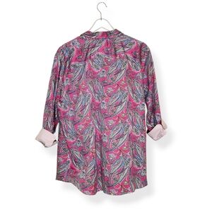 Chaps No Iron Women's Pink Paisley Print Button Front Shirt Top Plus Size 2X