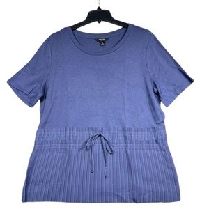 Vera Wang T-Shirt Blue Drawstring Waist Pleated Bottom Short Sleeve