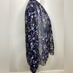Elegant floral sheer top with a stylish tie-neck design. Perfect for any occasion.