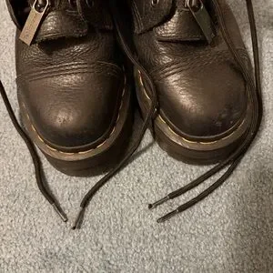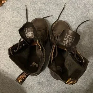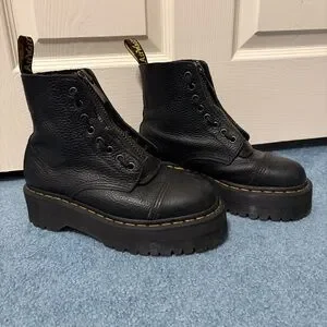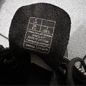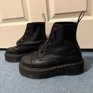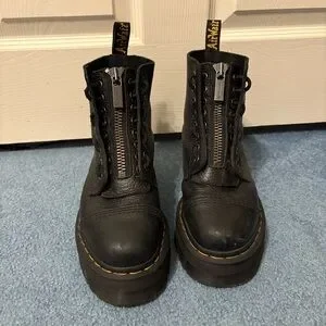 Elevate your look with these black platform-like combat boots with a front zipper. They are in very good pre-loved condition. These have some scratches (mostly on the toe areas) as shown in the photos. The laces have a couple scuffs but it adds to the broken in look. The ankle material is very soft and the toe boxes are sturdy. Please see all photos for detailed condition as I could’ve missed something in the written description. Let me know if you have any other questions before purchasing :)