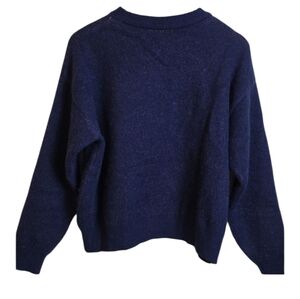 Daisy Street Teddy Crew Neck Pullover Sweater Blue Medium