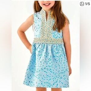 Brand new with tags Lilly Pulitzer mini franci dress blue Lagoon jacquard. Metallic gold. Size 6. Perfect holiday Christmas dress. Other sizes available in my closet for family matching!