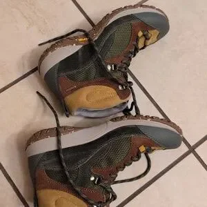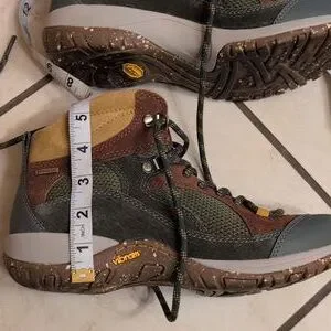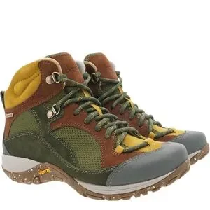 New without box Dansko Pine Posy Leather Hiking Boot Vibram Sole. Green brown and yellow colorblock. Genuine high quality leather and hard vibram rubber sole with excellent traction. Comfortable hiking boots. Please see measurement pictures to be sure of fit. European size 39, US size 8.5-9 equivalent. Retail: $170