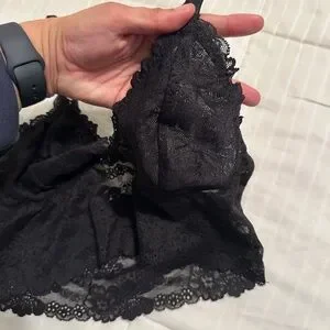 Really cute and classic bralette from Pink VS. All floral lace, it is unwired, and the cups have an additional layer of lining on them, so a little less sheer but still see through