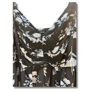 This a pre-owned Torrid chiffon maxi dress in black floral. Size 2x. There is a stain along the seam on the back right smocked bodice. Please see pictures. Otherwise in excellent condition
