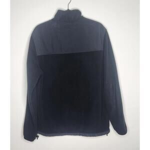 Color: Black fleece body with dark blue/navy shoulder and upper chest panels.