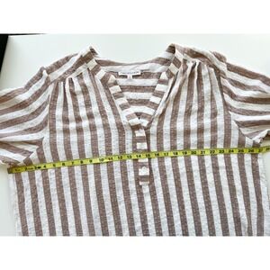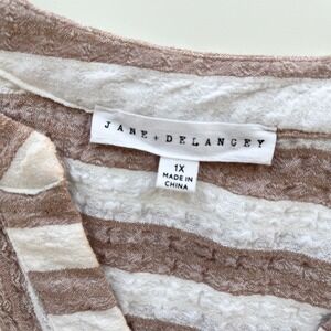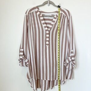 Jane & Delancey Vertical Striped Popover Blouse Top 1X Taupe White
