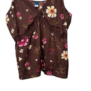 Old Navy Brown Lace Trimmed Floral Satin Cami Tank Top L