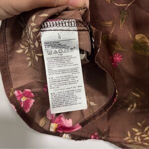 Old Navy Women’s Lace Trimmed Floral Satin Cami Tank Top in Brown, size Large. Wide shoulder straps in front, thin adjustable straps in back. V-neck. Darted bust. Lace trim along neck and front & back bodice. Smooth satin.