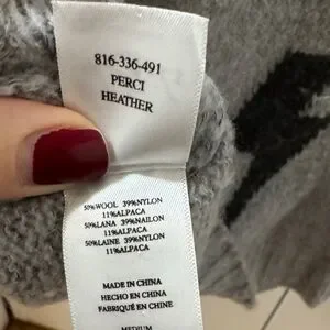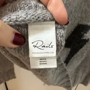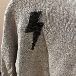 Cozy gray sweater with striking dark gray lightning bolt design. Perfect for a bold look.