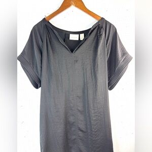 Chico's 2 M Caftan Jersey Shift Short Sleeve Black Basic Minimalist Dress