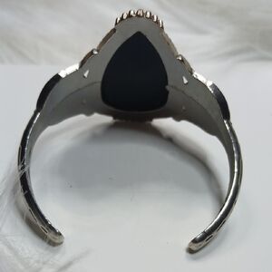 Bold black teardrop stone in a detailed silver band. Adds elegance to any look.
