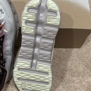 Sleek Cloudtilt On Running sneakers with a white body and brown accents. Ideal for everyday comfort. Only worn once not my style size 10.5 W looks brand new