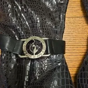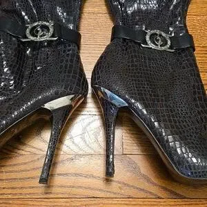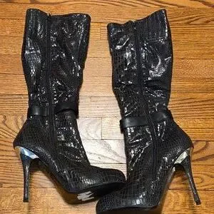 Vintage Baby Phat Croc-Embossed Black Patent Knee-High Boots size 10.5
